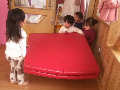 最後のお片付けも協力して「えっほえっほ」とマットを運んでくれましたよ。