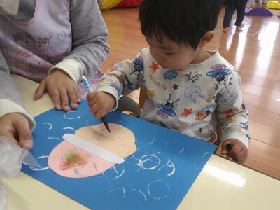 その後に、自分で目や口、頬っぺたを描いてみました。