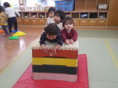 製作の合間は、跳び箱や、トンネル遊びをしました。