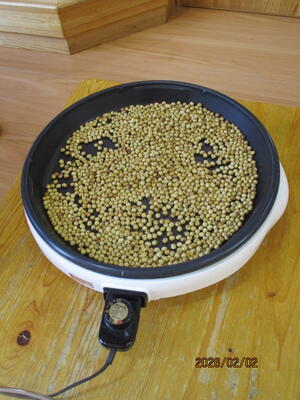 大豆を炒って、ホールには豆の香ばしい香りが広がっていました。
