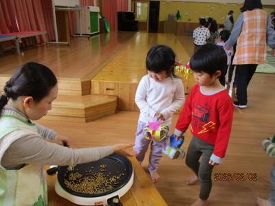 みんなで豆まきです。