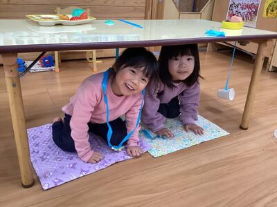 椅子で囲ってお部屋を作っていましたが、よく聞いてみると「ダンスのお部屋」だそうで、ここに入るとダンスをしてからじゃないと出られないようです♫