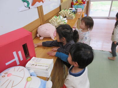 終わった後は、ぱんだ組の先生からシールや手作りお絵描き帳のプレゼントをもらい、またまた嬉しいこあら組さんでした。
