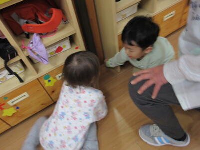 保育者が「だーるーまーさーんーが、こーろーんーだ」と言うのをよく聞いて、ピタっ!と止まるのが上手なこあらさんでした。