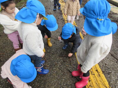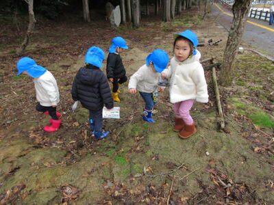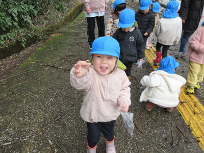遊歩道を歩いていると、ドングリやトゲトゲした実を発見。「あった!」「見てー」と、嬉しそうに手に取ったり、友達に見せたりしていましたよ。