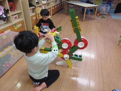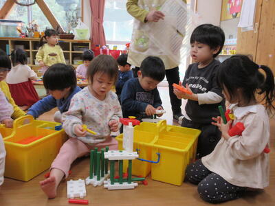 トンカチブロック、大きなブロック、小さなブロック等、様々なブロックをして楽しみました。