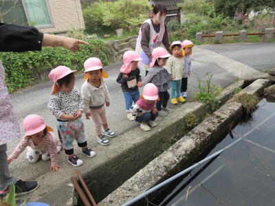 鯉も見て帰りました。鯉の姿が見えると「おった!」と嬉しそうでした。たくさんの生き物に出会えた楽しい散歩となりました。