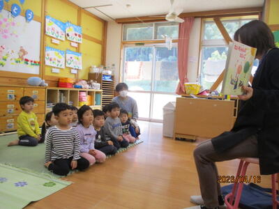 こあらさんも、ぱんだ組の部屋にやってきて、一緒に絵本の世界を楽しみましたよ。