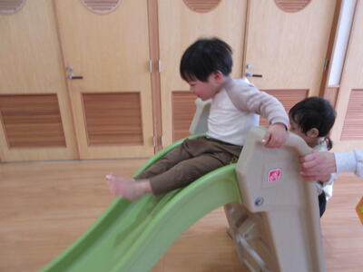 すべり台はみんなが大好き!何度もくり返し滑っていましたよ。