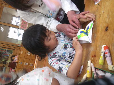 「模様、つけようか」と言うと、「やったー!」と喜んでいました。