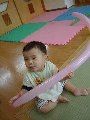 丸い風船は怖くないけど、長い風船は少し怖いお友達もいました。