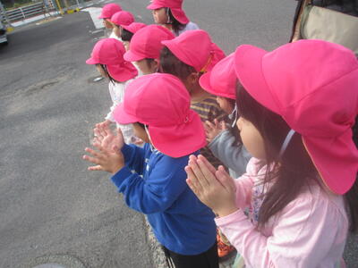 「バイバーイ」と手を振り、園に戻りました。