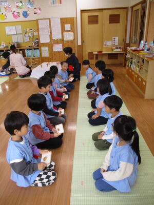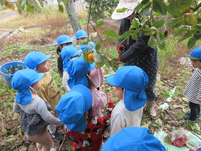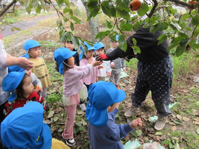 大きな柿を受け取り、とっても嬉しそうでした。「ありがとう!」と何度もお礼を伝える子もいました。いつも温かく声をかけてくださりありがとうございます。